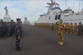 METROSOERYA||TNI AL. Koarmada II. pelaksanaan Serah Terima Jabatan (Sertijab) Pangkoarmada II, Laksda TNI Maman Firmansyah menggelar Exit Briefing yang dikemas dalam Apel Khusus, yang dilaksanakan di Dermaga Madura Ujung. Koarmada II. Surabaya, Senin (7/8).