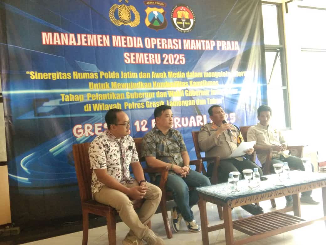 HumaGRESIK , Metrosoerya – Dalam rangka menjaga kondusifitas keamanan dan ketertiban masyarakat (kamtibmas) menjelang pelantikan Gubernur dan Wakil Gubernur Jawa Timur, Humas Polda Jatim bersama awak media menggelar kegiatan Manajemen Media Operasi Mantap Praja Semeru 2025 di Rumah Makan Pak Elan 2, Gresik, pada Rabu (12/2/2025).