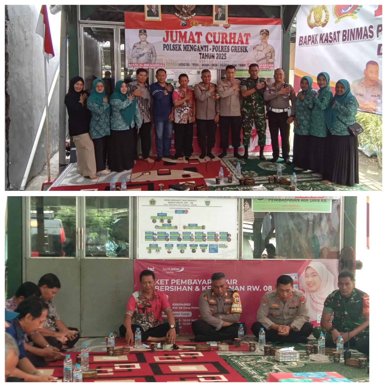 Kapolres Gresik AKBP Rovan Richard Mahenu melalui Kapolsek Menganti, AKP Moch. Dawud, menegaskan bahwa pihak kepolisian siap menampung aspirasi warga dan mencarikan solusi terbaik. Ia juga menyampaikan beberapa isu yang sedang menjadi perhatian, seperti gesekan antarperguruan silat, kebijakan tidak adanya penyelesaian Restorative Justice untuk kasus tertentu, serta pentingnya peran masyarakat dalam menjaga keamanan lingkungan.