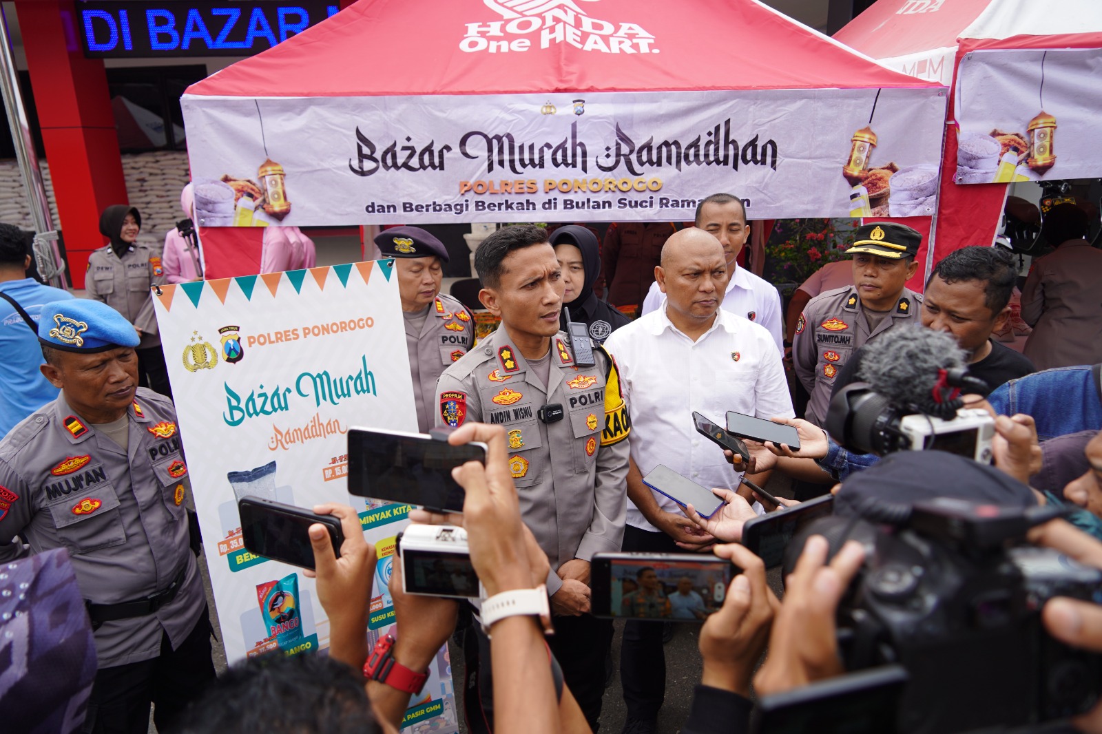 Kapolres Ponorogo AKBP Andin Wisnu Sudibyo menyampaikan bahwa kegiatan ini merupakan bentuk kepedulian Polri dan YKB Cabang Ponorogo dalam membantu masyarakat memenuhi kebutuhan selama bulan Ramadhan.