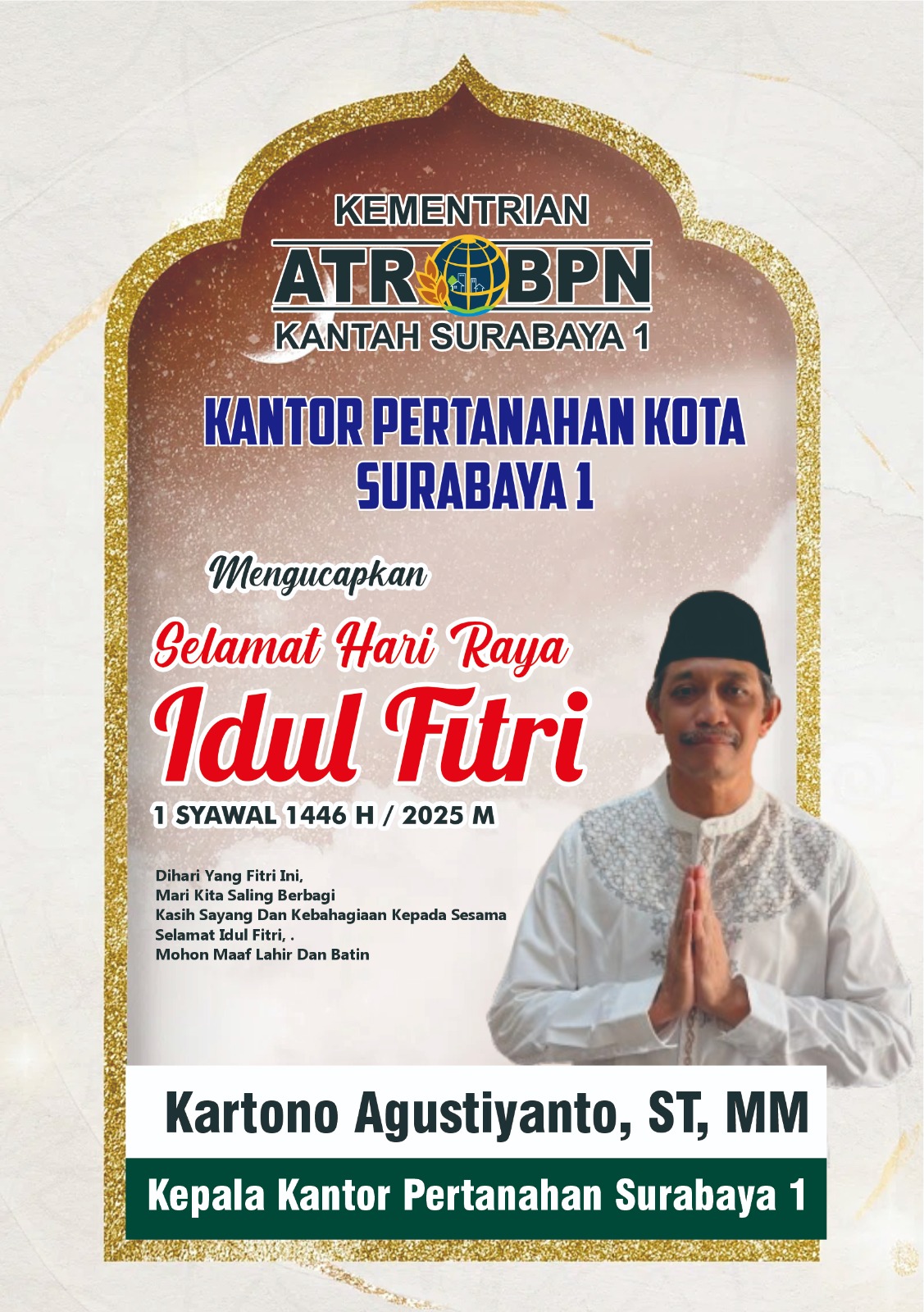 ATR/BPN Kantah Surabaya 1 Mengcapkan Selamat Hari Raya Idul Fitri 1 Syawal 1446 H/ 2025 M