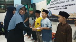 Alumni SMP Wahid Hasyim 8 Waru Bagi Ta’jil Gratis Dan Santuni Anak Yatim Daerah|March 23, 2025by Redaksi Metrosoerya Sidoarjo – Metrosoerya.com.- Meskipun diterpa gerimis puluhan alumnus alumni SMP Wahid 8