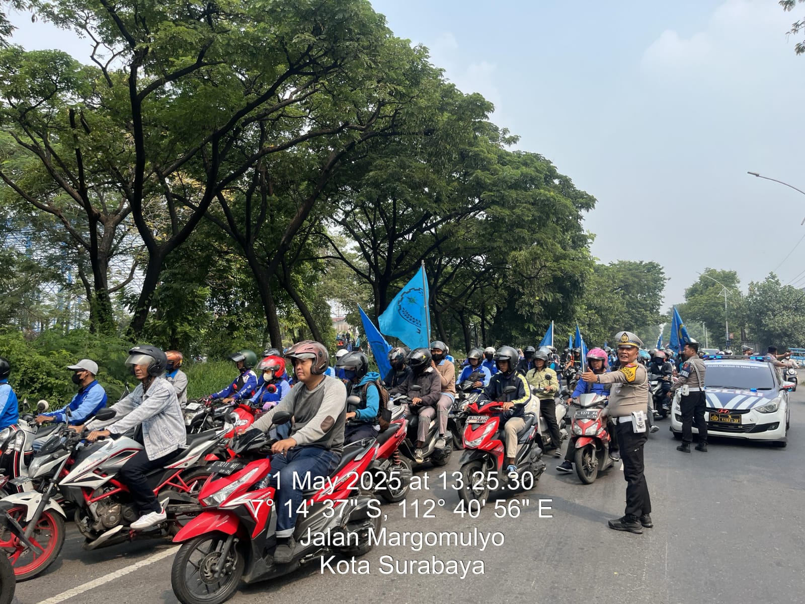 Polres Pelabuhan Tanjung Perak Pam Jalur dan Kawal Massa saat Peringatan May Day di Surabaya