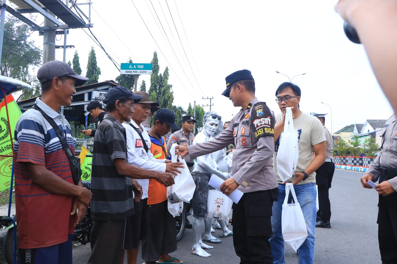 Kegiatan tersebut dipimpin langsung oleh Kasat Intelkam Polres Ngawi, AKP Bambang Wahyu Jati, S.H dengan menggelar aksi sosial di sekitar jalan perempatan Supermarket Tiara, Ngawi.