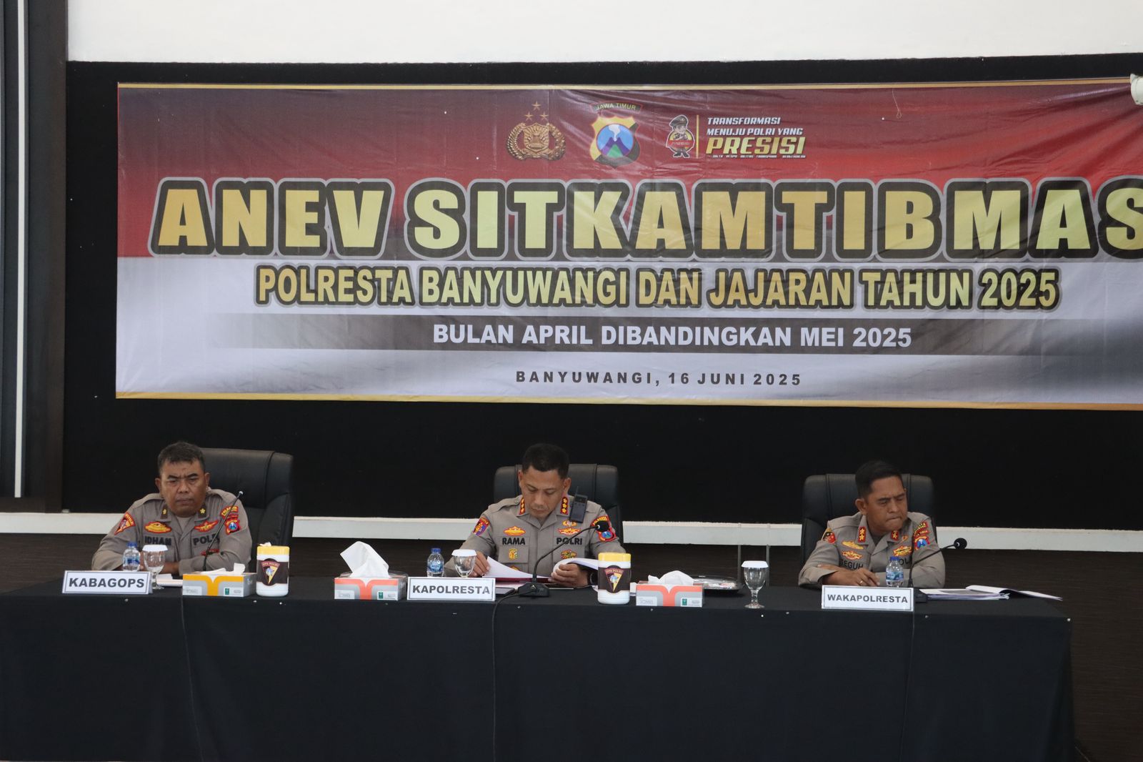 Banyuwangi, MetroSoerya.com.- Polresta Banyuwangi terus berbenah. Untuk memastikan layanan kepada masyarakat berjalan optimal, seluruh jajaran menggelar Anev Kamtibmas di Rupatama Wirapratama Polresta Banyuwangi , Senin (16/6/2025).