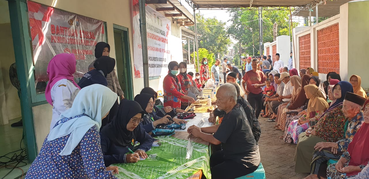 SIDOARJOlmetrosoerya.com, – Menyambut Hari Bhayangkara ke-79, Polresta Sidoarjo Polda Jatim menunjukkan komitmennya dengan mendekatkan diri kepada masyarakat, melalui kegiatan bakti kesehatan (Baktikes) berupa pengobatan gratis.