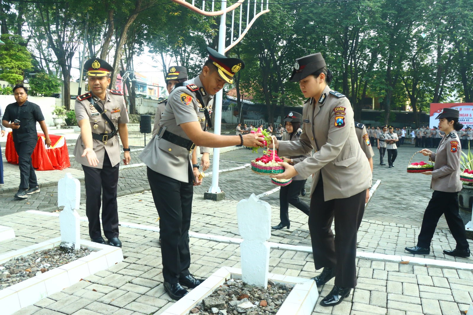 Bertempat di Taman Makam Pahlawan (TMP), Jalan Pahlawan No. 37-39, Gapuro Sukolilo, Bedilan, Kabupaten Gresik, Jawa Timur, prosesi ziarah ini dihadiri oleh sejumlah pejabat penting. Turut mendampingi Kapolres Gresik antara lain Kepala BNN Kabupaten Gresik AKBP Suharsi, Wakapolres Gresik Kompol Danu Anindhito Kuncoro Putro, para pejabat utama Polres Gresik, Kapolsek jajaran, anggota Polres Gresik, serta perwakilan PP Polri Cabang Gresik.