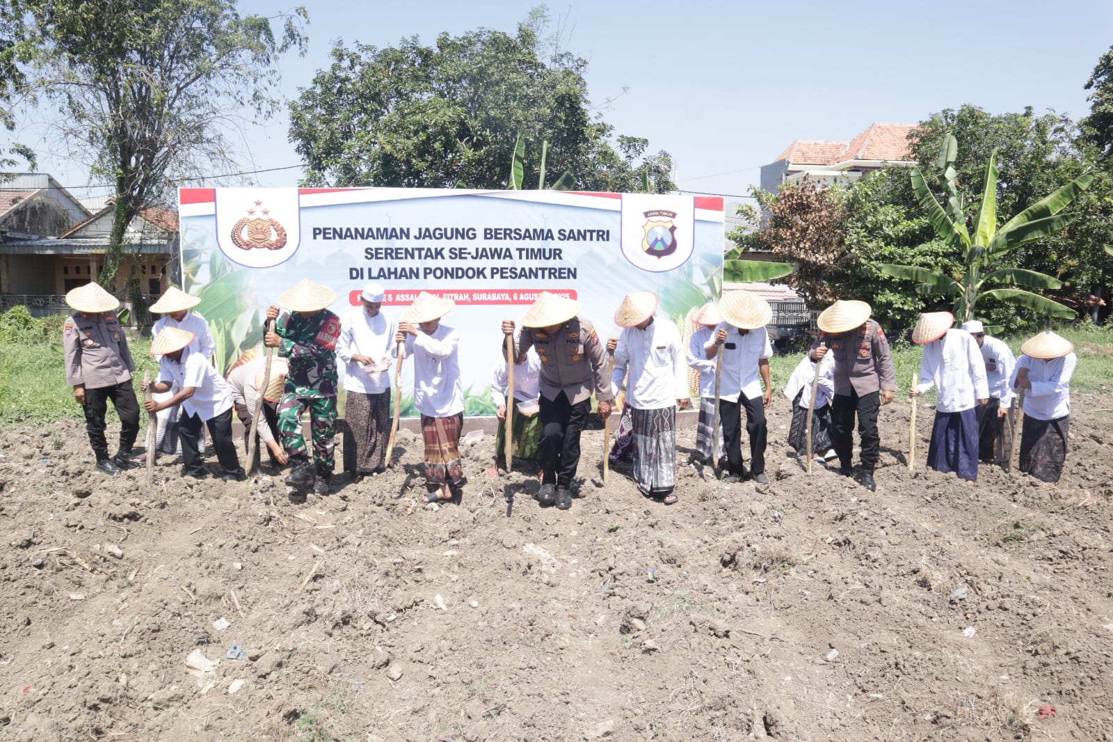 “Polda Jatim telah memanfaatkan lahan seluas 65.521 hektare dan kini menggandeng pondok pesantren untuk menyukseskan penanaman jagung serentak, guna mendukung program Astacita Presiden RI,” jelas Kombes Pol Ari Wibowo.