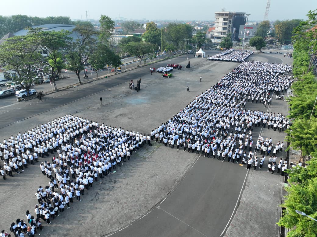 Bupati Sidoarjo, H. Subandi, memimpin langsung Apel Akbar Pengarahan terhadap 3.843 calon Pegawai Pemerintah dengan Perjanjian Kerja (PPPK) Paruh Waktu di Lapangan Parkir Timur GOR Delta, Jumat (22/8/2025).