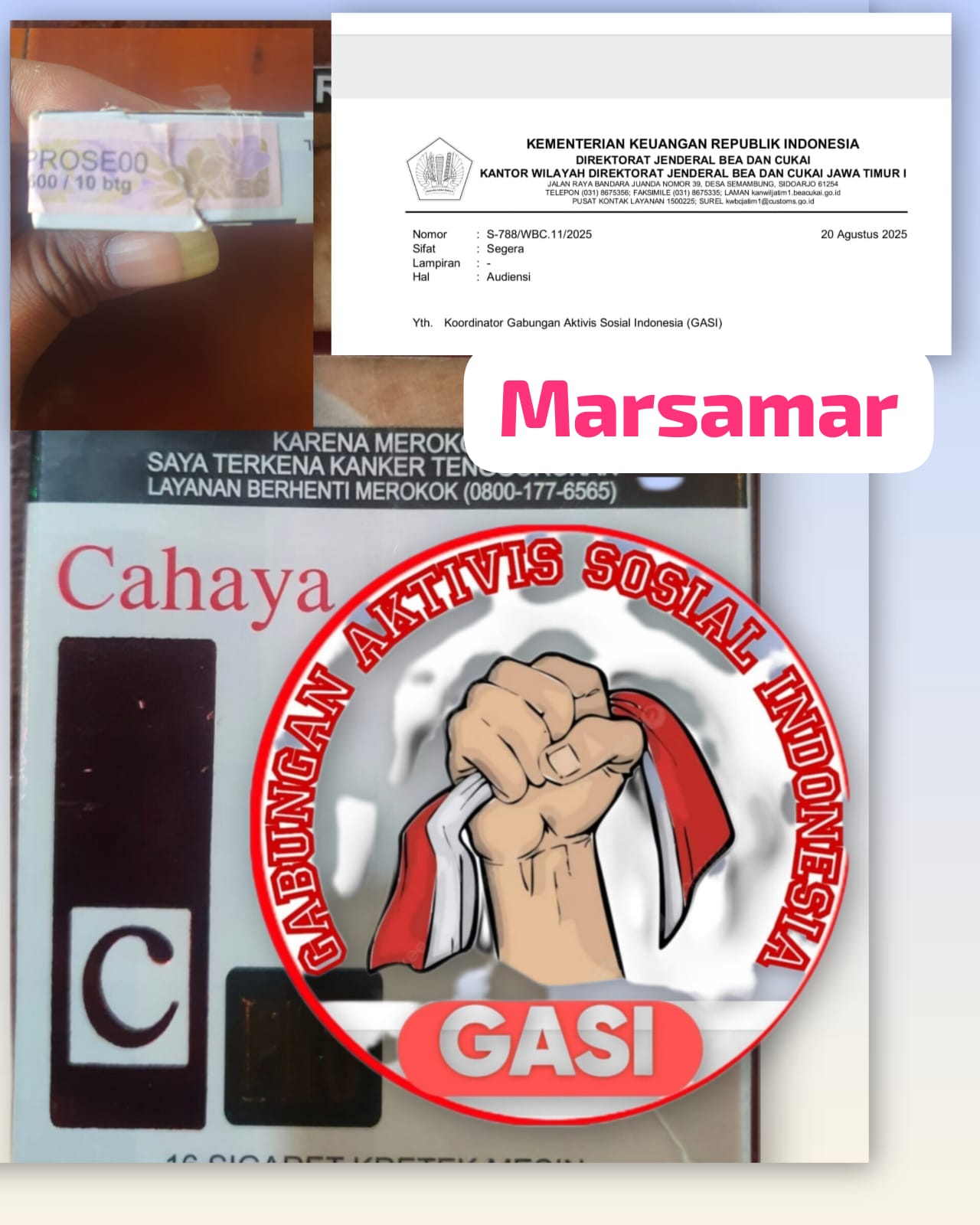 Kantor Wilayah Direktorat Jenderal Bea dan Cukai Jawa Timur telah resmi mengundang GASI untuk audiensi di Kantor Bea Cukai Juanda, Sidoarjo, Senin (25/8/2025). Langkah ini diklaim sebagai bentuk keseriusan aparat dalam menindak praktik rokok ilegal.