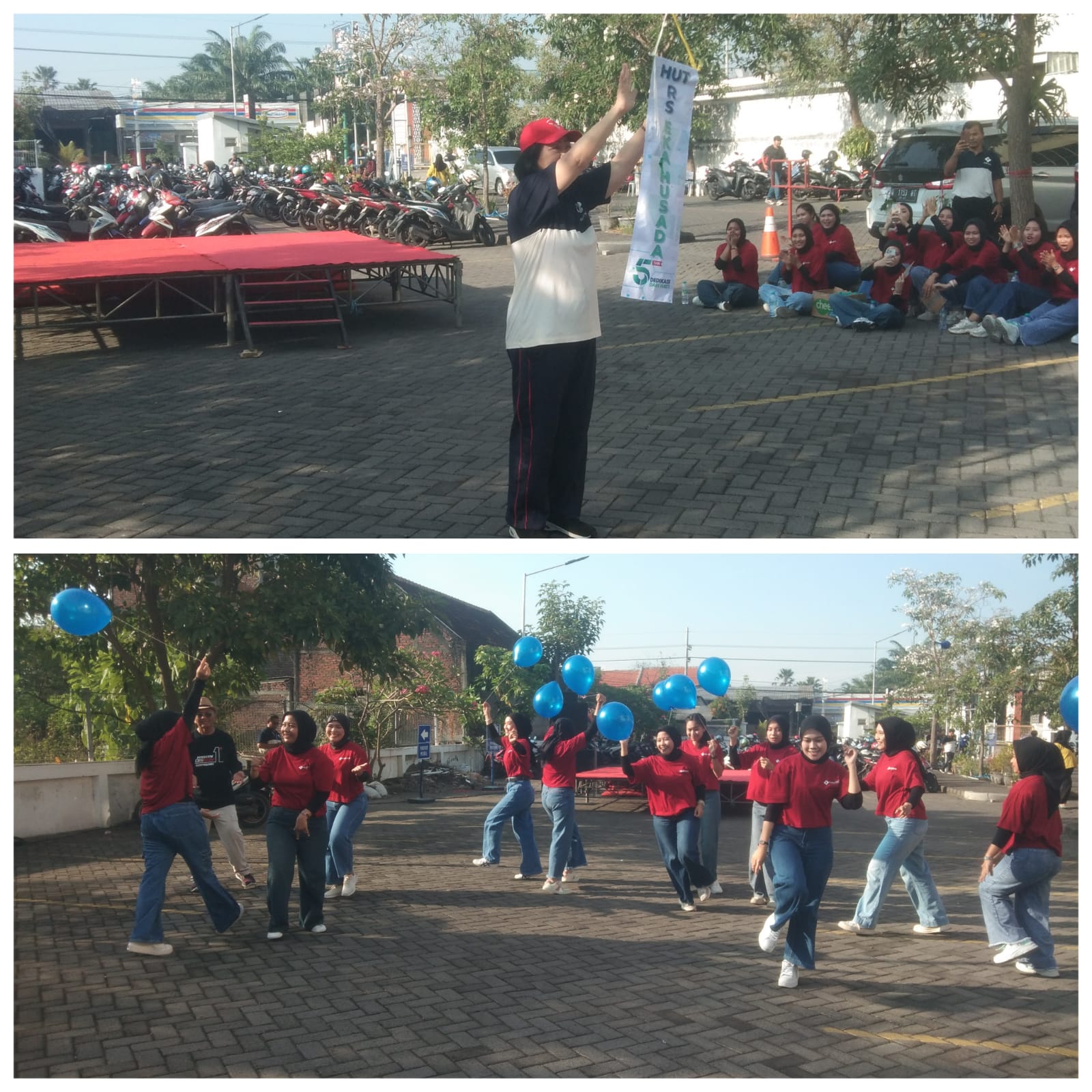 Senam bareng bersama seluruh karyawan beserta staf dan tidak ketinggalan juga mantan Menteri BUMN yaitu Dahlan Iskan juga hadir dalam memeriahkan acara HUT Ke – 05 Tahun .