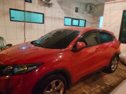 Barang bukti yang diamankan meliputi satu unit mobil Honda HR-V warna merah, satu kunci kontak, dan dokumen kendaraan.