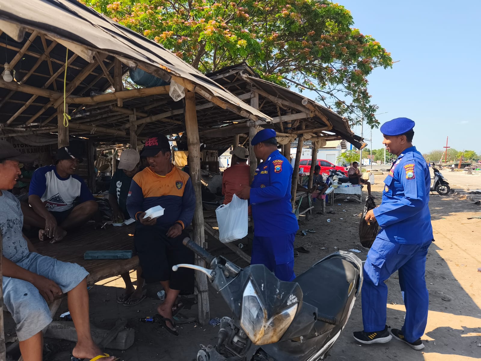 Harkamtibmas : Patroli Pesisir Polres Situbondo Berbagi Nasi Bungkus untuk Nelayan