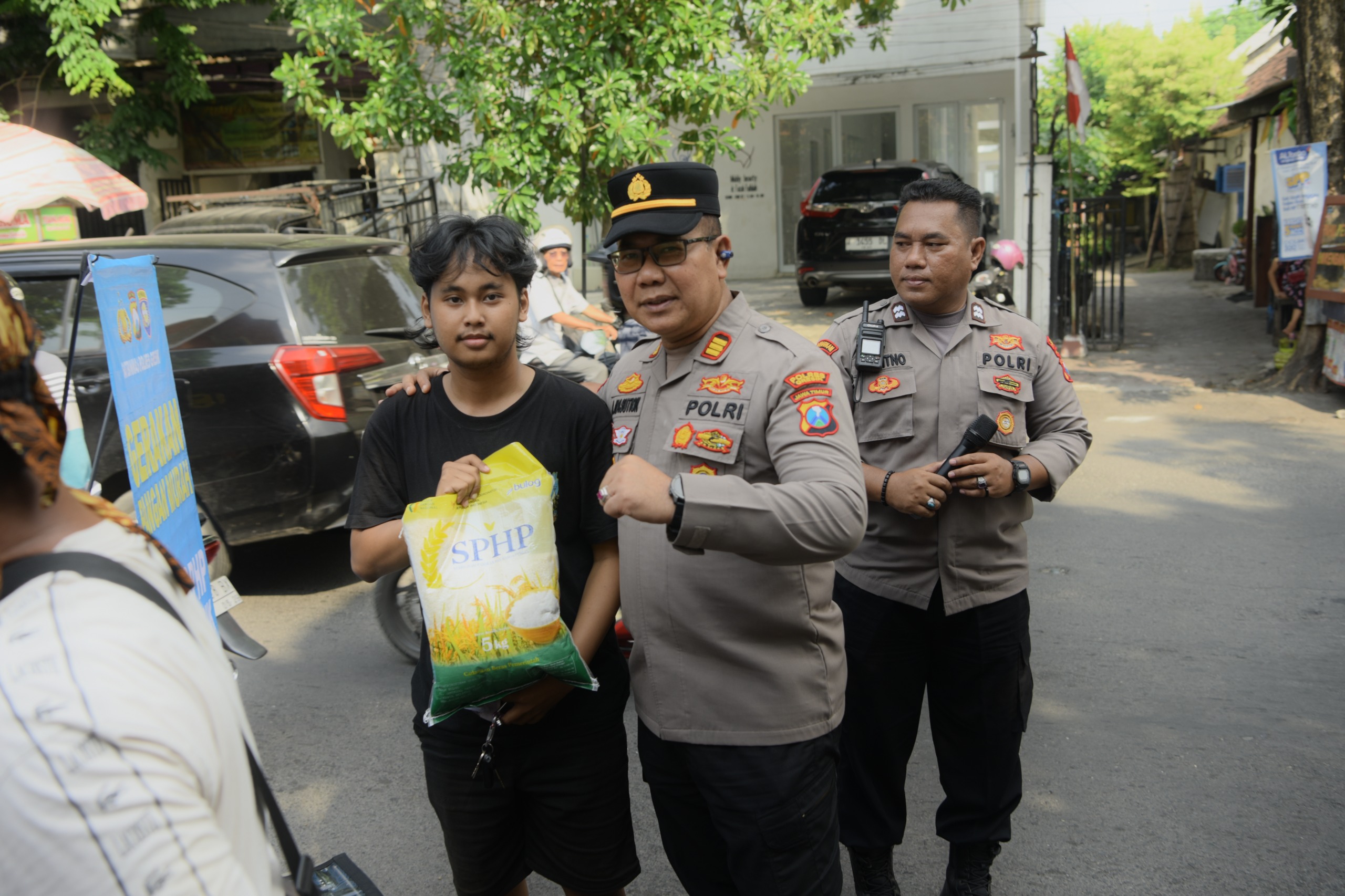 Penyaluran beras murah ini dipimpin langsung oleh Kasat Binmas Polres Gresik, AKP Alimuddin Nasution, bersama jajaran Satbinmas dan personel Polsek Kebomas.