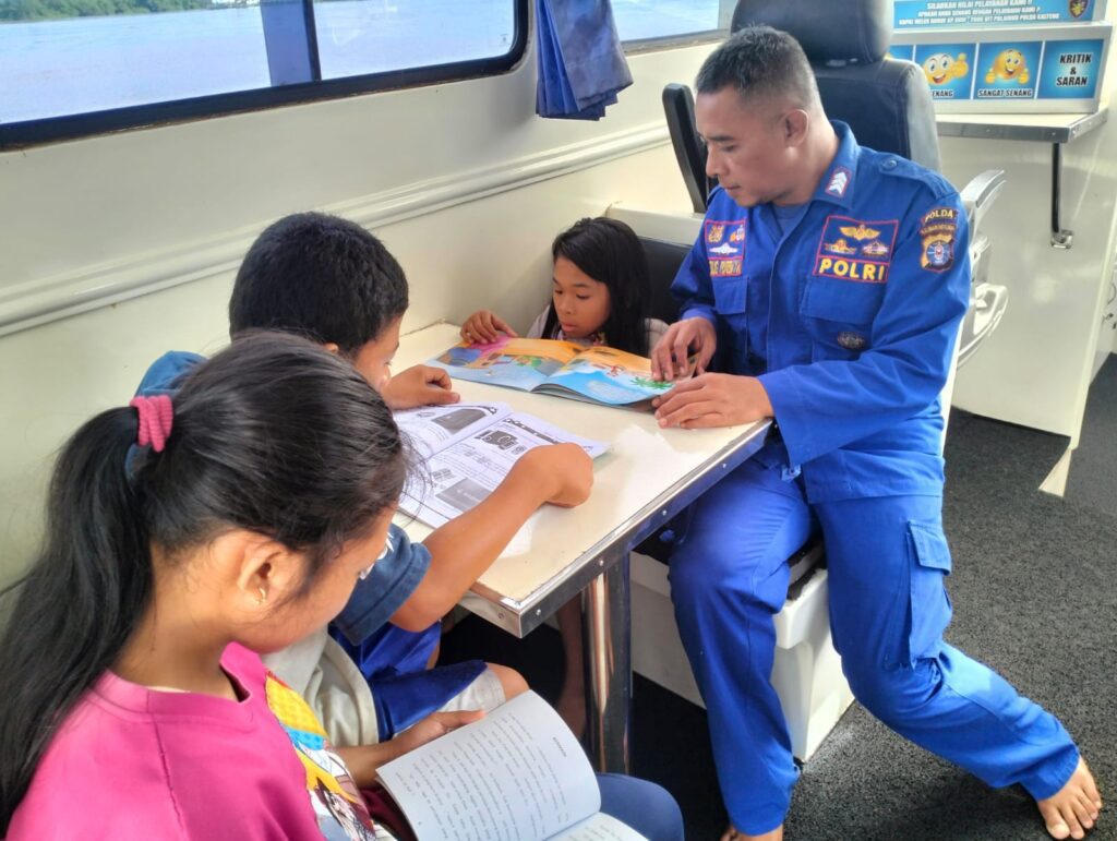 Salah satu kapal yang melaksanakan Patroli di Daerah Aliran Sungai (Das) Mentaya adalah Kapal Polisi XVIII-2006, yang menyediakan berbagai jenis buku. Seperti buku dongeng, majalah anak, buku bergambar, buku cerita dan lain-lain. Anak-anak pesisir Sungai yang berkunjung sangat antusias belajar membaca di KP XVIII-2006, Kamis (16/10/2025) pagi.