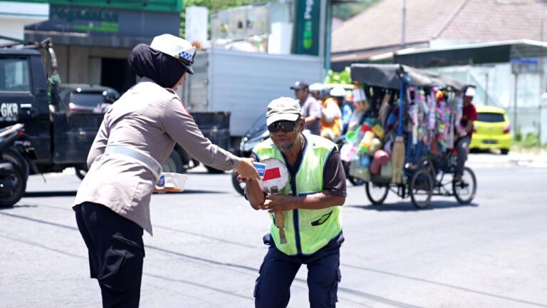 GRESIK , Metrosoerya - Terik matahari siang di Kota Gresik, Jumat (17/10), tak menghalangi semangat para anggota Satuan Lalu Lintas...