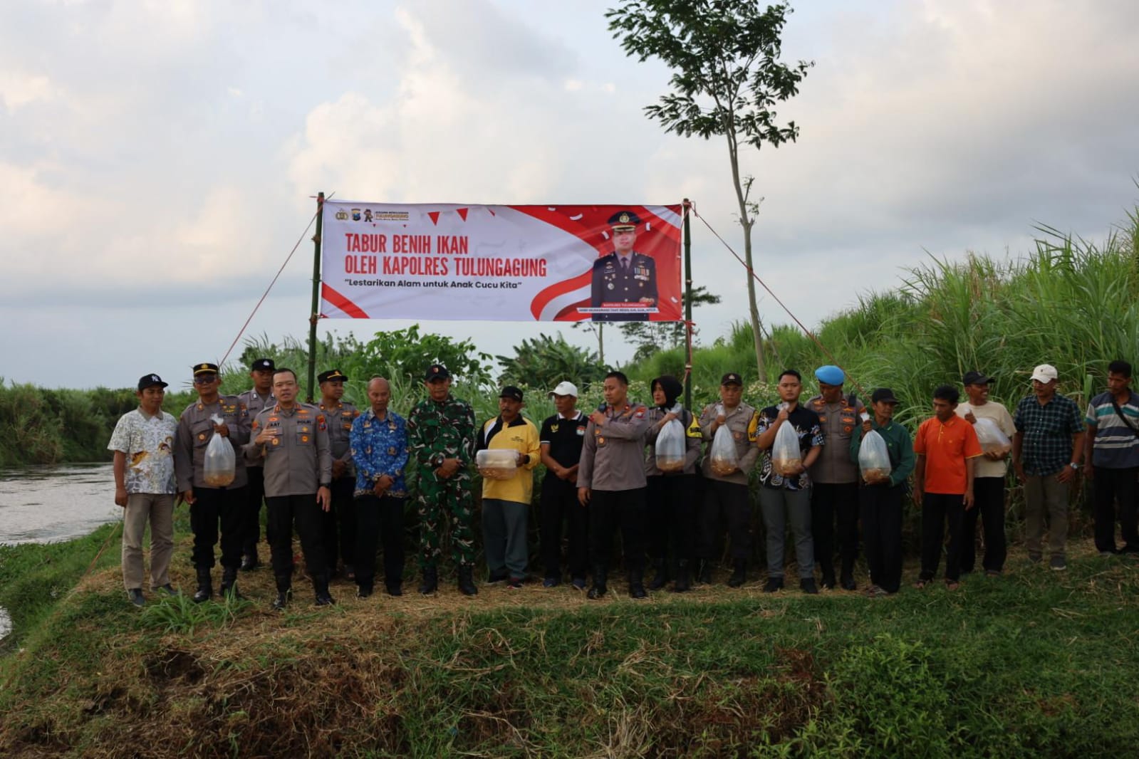 Dalam kegiatan bertema pelestarian lingkungan itu,Kapolres Tulungagung AKBP Muhammad Taat Resdi, bersama unsur Forkopimcam Boyolangu serta Kepala Desa Kendalbulur Anang Mustofa, menebar sebanyak 5.000 ekor benih ikan tombro.