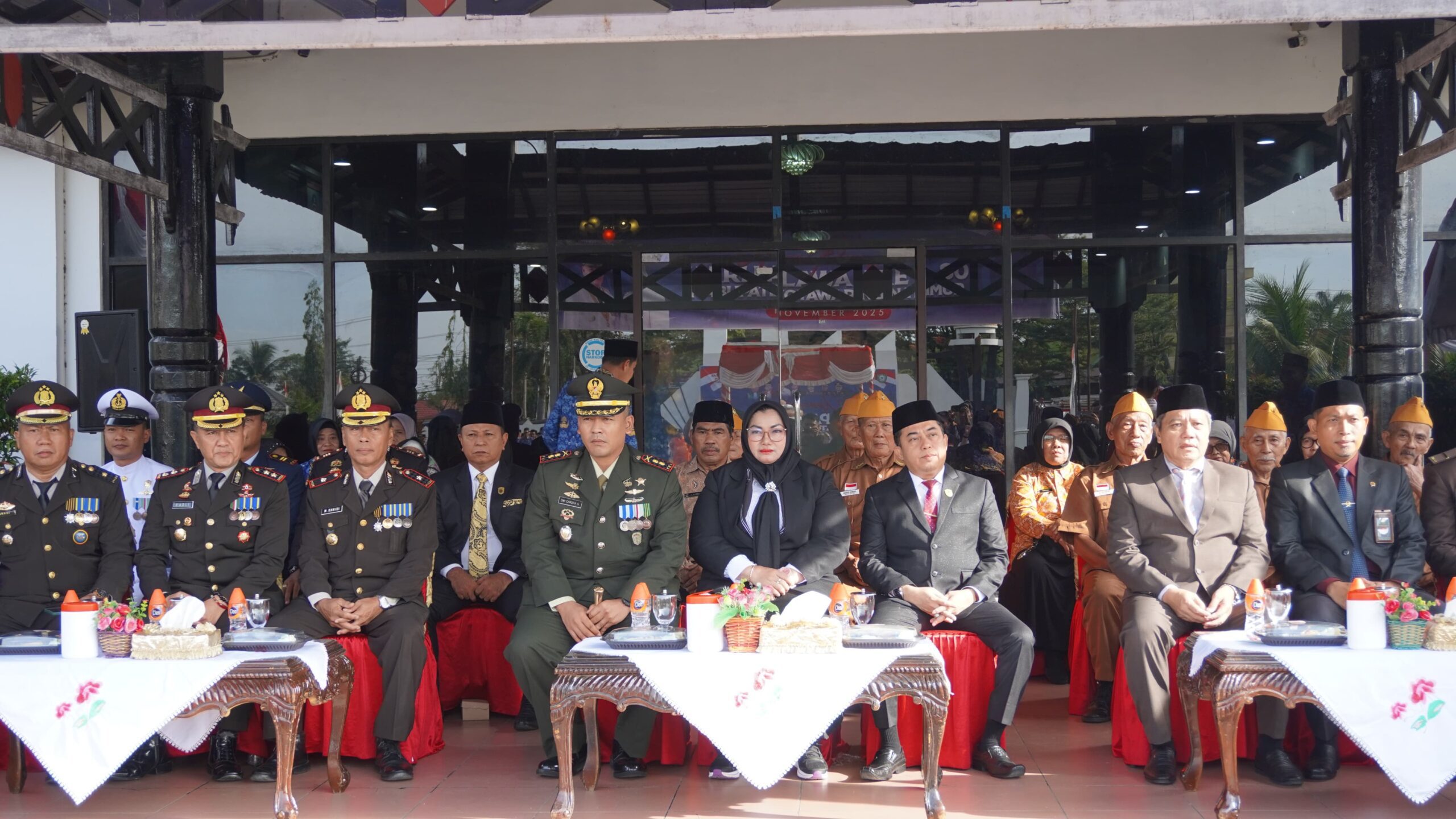 Komandan Kodim 1015/Sampit Letkol Inf Dwi Candra Setyawan membacakan amanat dari Menteri Sosial RI, Hari ini, di bawah langit Indonesia yang merdeka, kita menundukkan kepala penuh hormat mengenang para pahlawan bangsa. Mereka bukan sekadar nama yang terukir di batu nisan, melainkan cahaya yang menerangi jalan kita hingga hari ini.