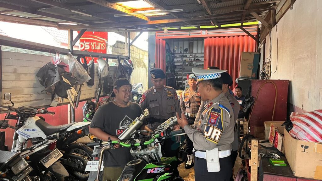 Sambangi Bengkel Modifikasi, Personel Ops Zebra Telabang Sosialisasikan Kamseltibcarlantas dan Larangan Knalpot Brong