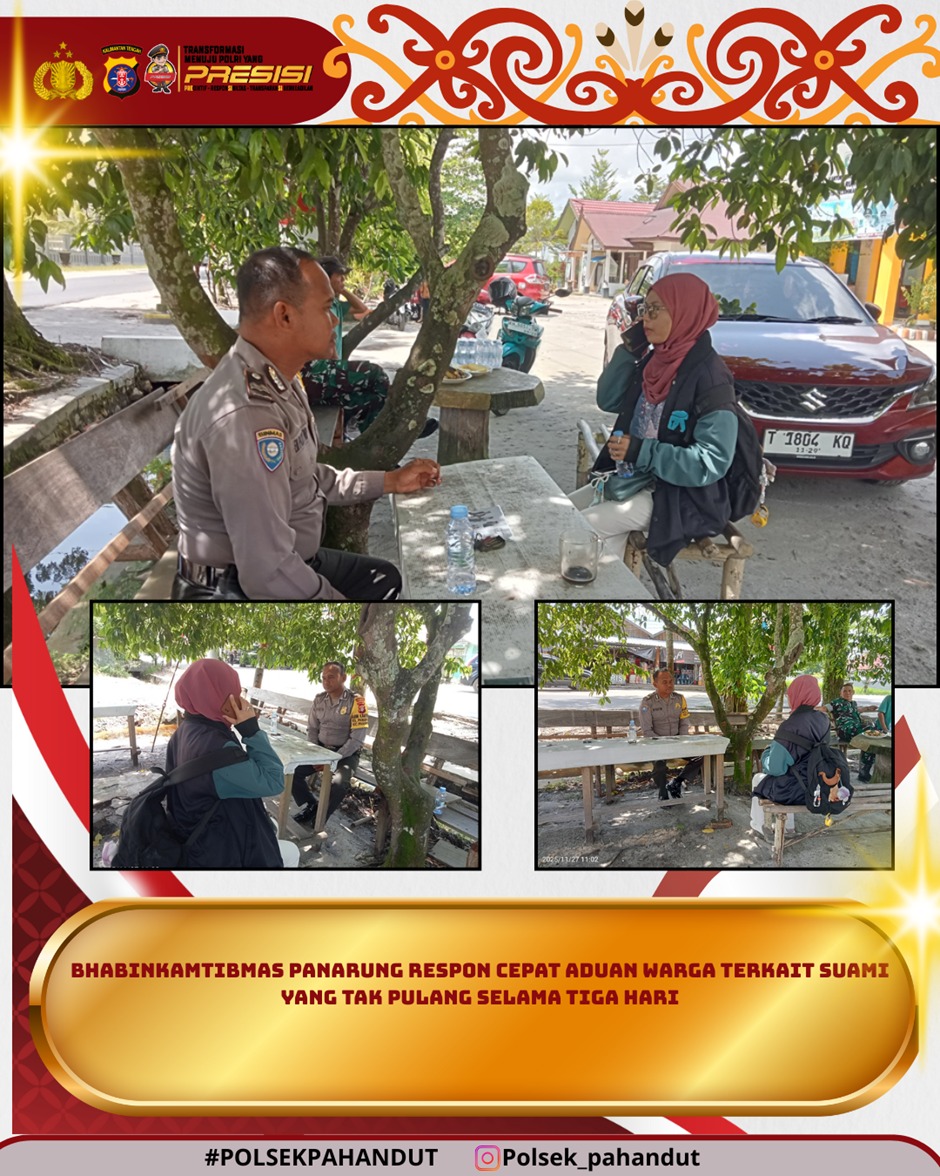 Bhabinkamtibmas Panarung Respon Cepat Aduan Warga Terkait Suami yang Tak Pulang Selama Tiga Hari