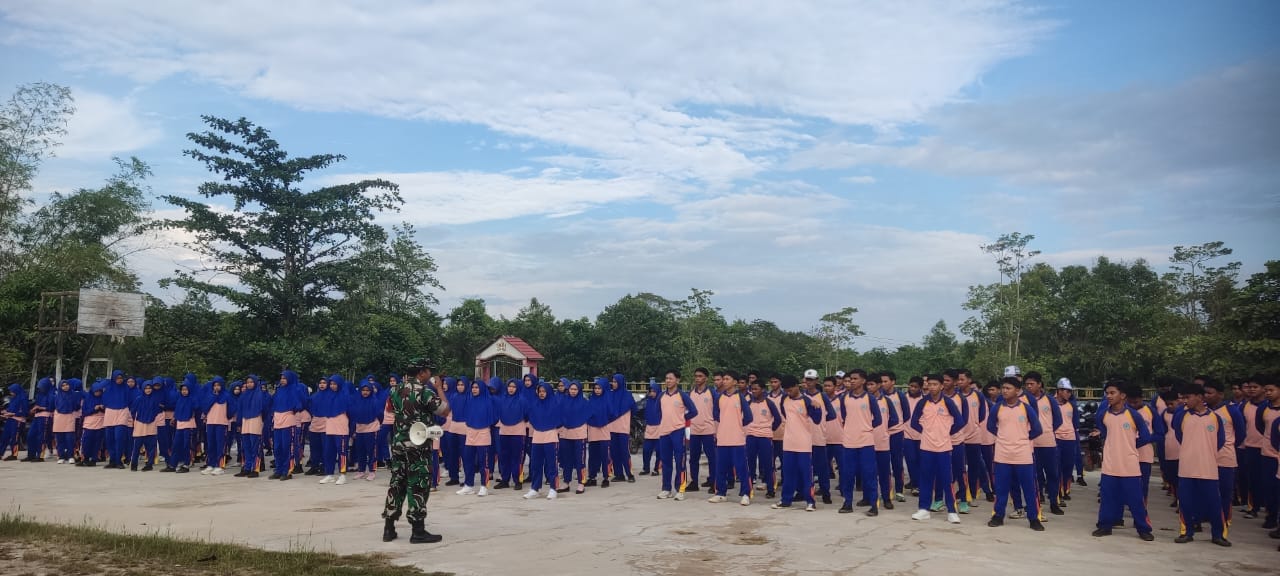 Metrosoerya.co.id,-Sampit – Babinsa Koramil 1015-01/MHS, Serda Halim Perdana Kusuma, memimpin latihan PBB bagi siswa SMAN 1 Mentaya Hilir Selatan yang dilaksanakan pada hari Jum’at, 28 November 2025.