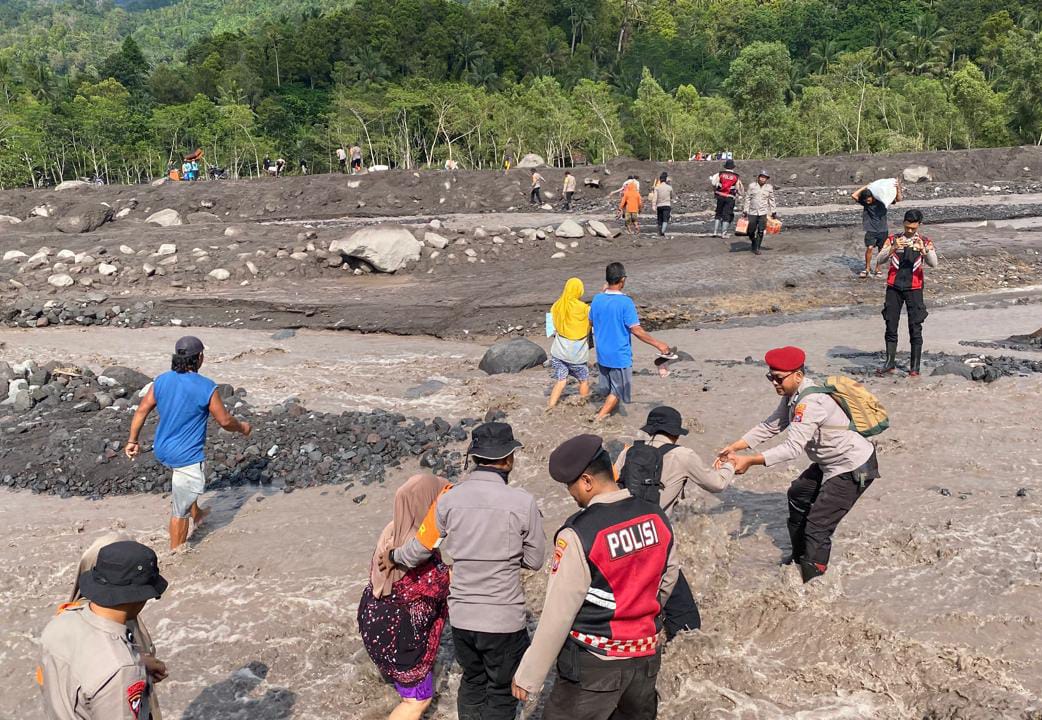“Jadi upaya penyelamatan warga yang terdampak banjir lahar ini kami lakukan dengan menerjunkan sejumlah personel di jalur evakuasi,” terang Kombes Pol Abast.