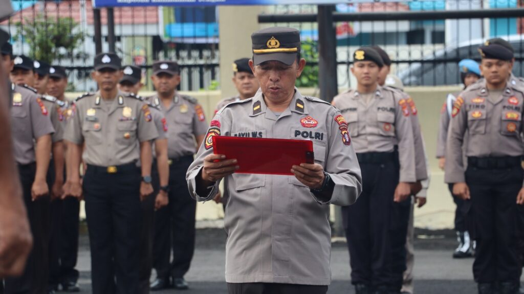 Apel pagi tersebut diikuti oleh personel dari berbagai satuan fungsi yang hadir dengan tertib sebagai bagian dari kesiapan awal sebelum melaksanakan tugas kepolisian.