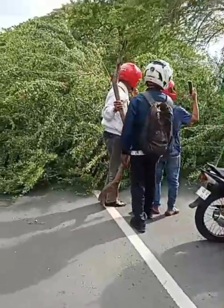 “Pas lagi lewatin situ, tiba-tiba anginnya sangat kencang terus pohonnya langsung tumbang ke arah kita. Saya bisa menghindar tapi penumpangnya tidak kebagian,” ujar Alwi saat menceritakan kejadiannya.