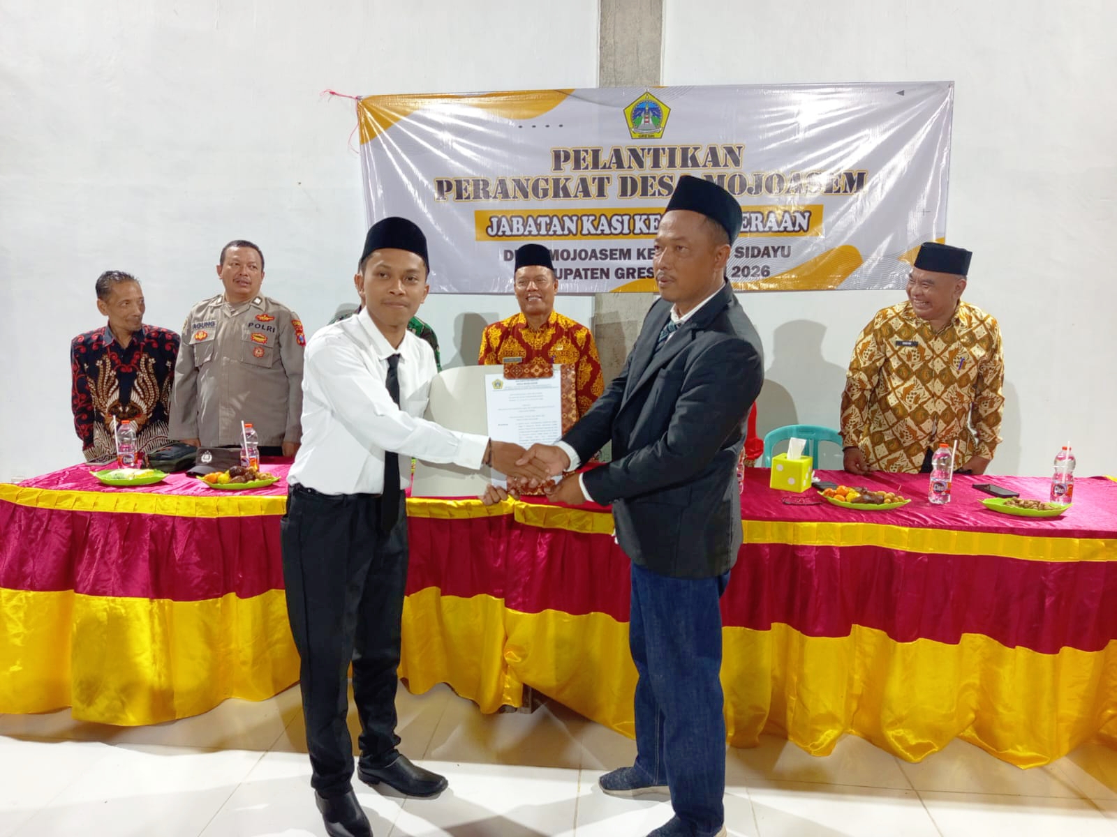Kegiatan luar biasa ini digelar dalam rangka Pelantikan Perangkat Desa yang baru untuk mengisi posisi kepala Seksi (Kasi) Kesejahteraan. Prosesi pengambilan sumpah jabatan dipimpin langsung oleh Kepala Desa Mojoasem, Muhammad Fatih.