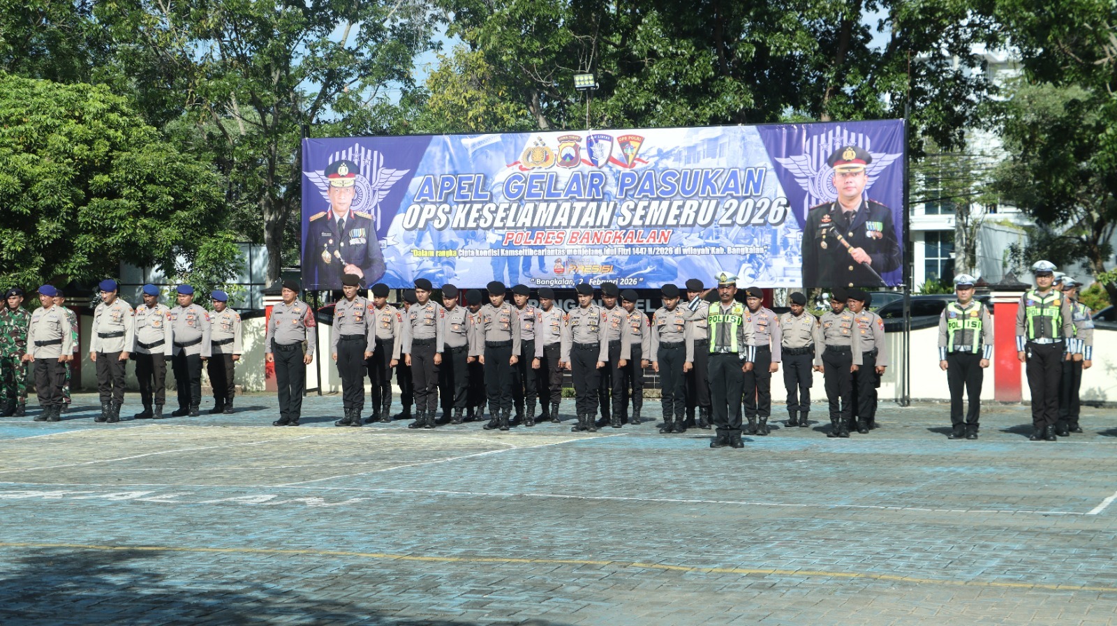 Metrosowrya.com||Bangkalan – metro soerya com. Polres Bangkalan menggelar apel gelar pasukan Operasi Keselamatan Semeru 2026 dalam rangka mewujudkan keamanan, keselamatan, ketertiban, dan kelancaran lalu lintas (kamseltibcarlantas) yang aman, nyaman, dan selamat menjelang pelaksanaan Operasi Ketupat Semeru 2026. Kegiatan tersebut dilaksanakan di Lapangan Apel Polres Bangkalan, Senin (02/02/2026).