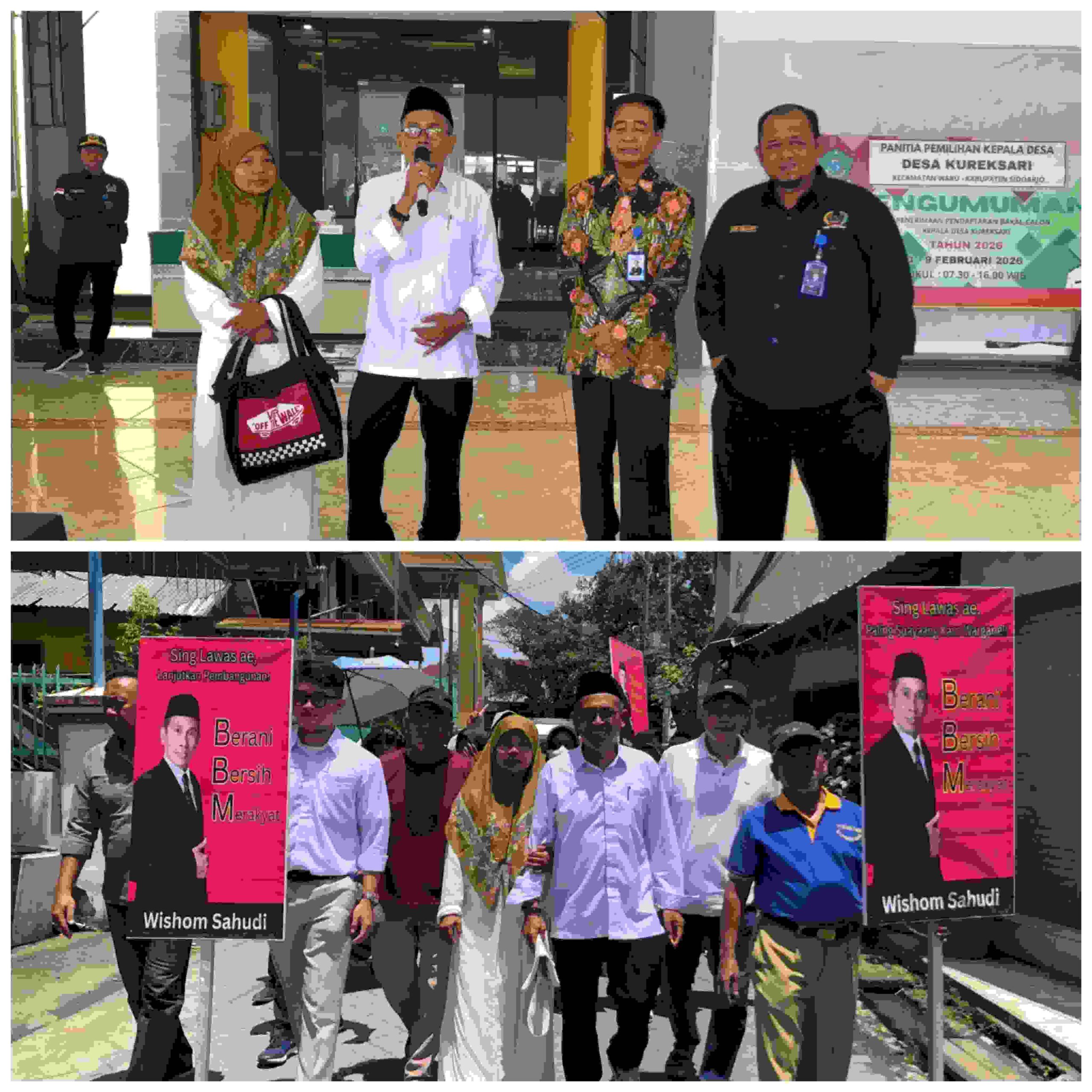 Sidoarjo – Metrosoerya.com.- Kepala Desa Kureksari Kecamatan Waru Sidoarjo Wishom Sahudi, secara resmi menyerahkan berkas keabsahan bakal calon (Balon) Kepala Desa Kureksari tahun 2026. Penyerahan tersebut langsung diterimah oleh Ketua Panitia Pemilihan Kepala Desa Kureksari H. Chanif, ST, di Pendopo Balai Desa setempat, Rabu (4/2/2026).