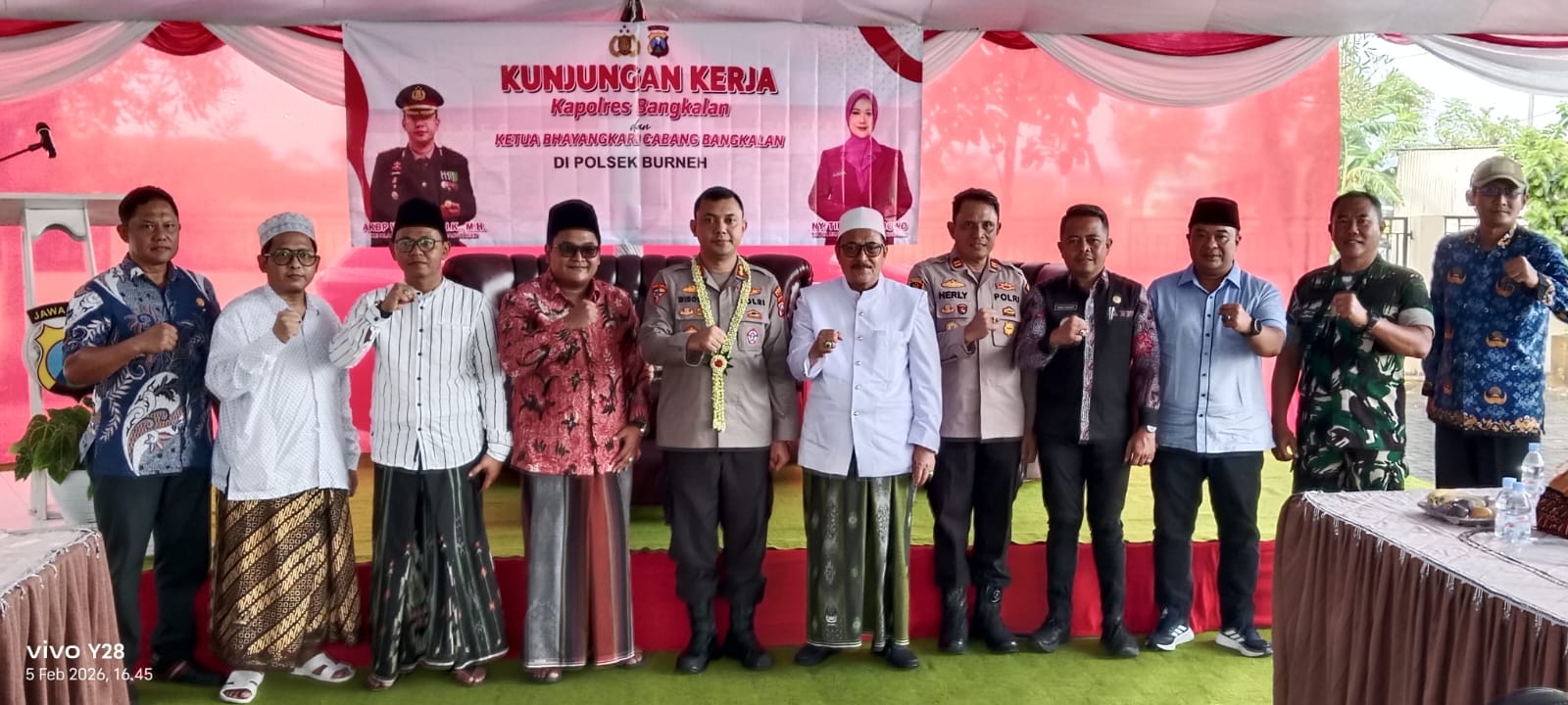Bangkalan-Metro soerya com.Kapolres Bangkalan AKBP Wibowo. S.I.K, M.H, dan Ketua Bhayangkari Cabang Bangkalan Tiffany Wibowo beserta rombongan pejabat utama Polres Bangkalan beserta pengurus Bhayangkari melaksanakan kunjungan kerja ke Polsek Burneh. Kamis, (05/02/2026).