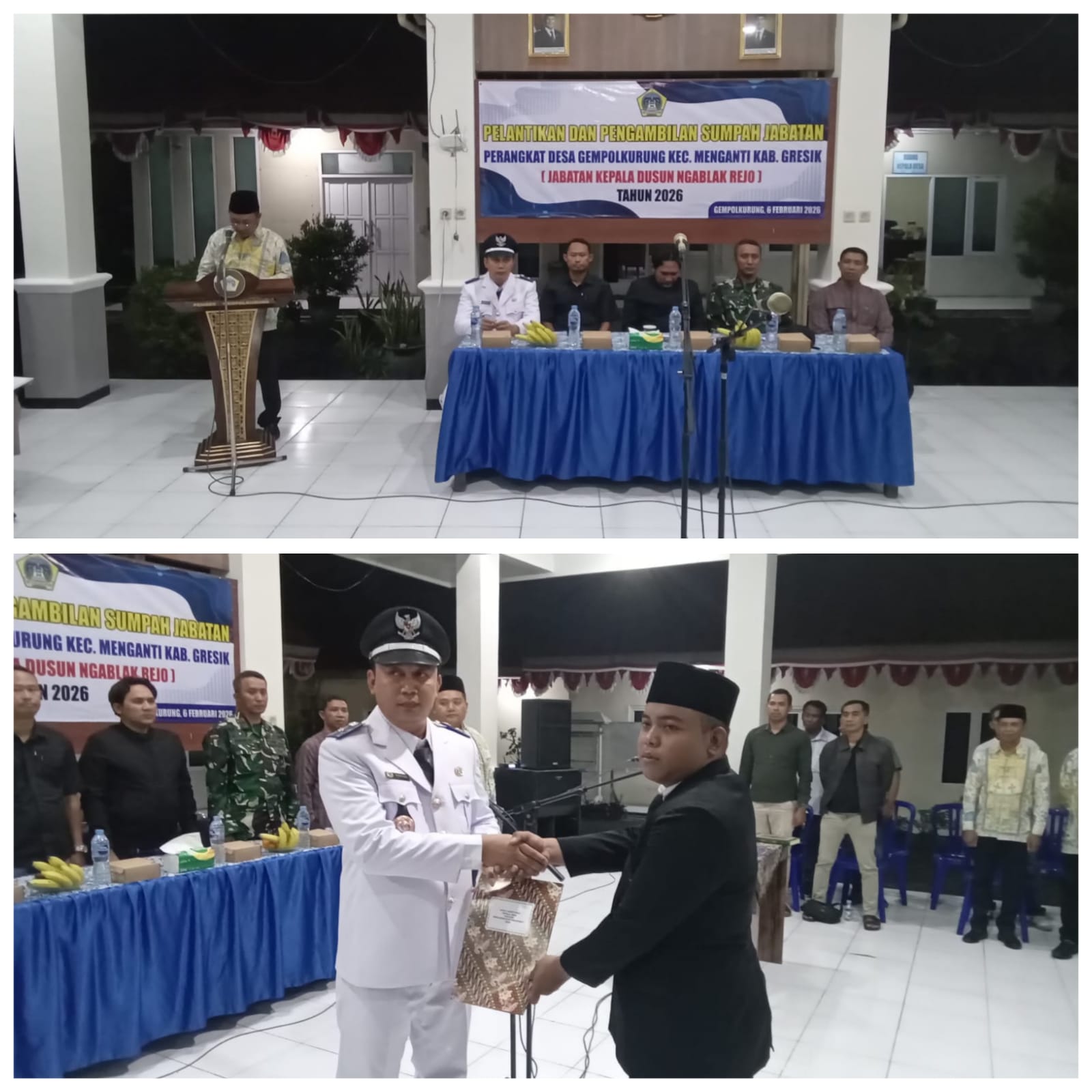 Gresik , Metrosoerya – Pemerintah Desa Gempolkurung , Kecamatan Menganti , Kabupaten Gresik telah menggelar Pelantikan dan Pengambilan Sumpah Jabatan Kepala Dusun ( Kasun ) Ngablakrejo , pada hari Jumat( 6/02/2026 ) malam . Kegiatan yang berlangsung di Pendopo Balai Desa setempat tersebut berjalan dengan lancar , tertib dan penuh makna .