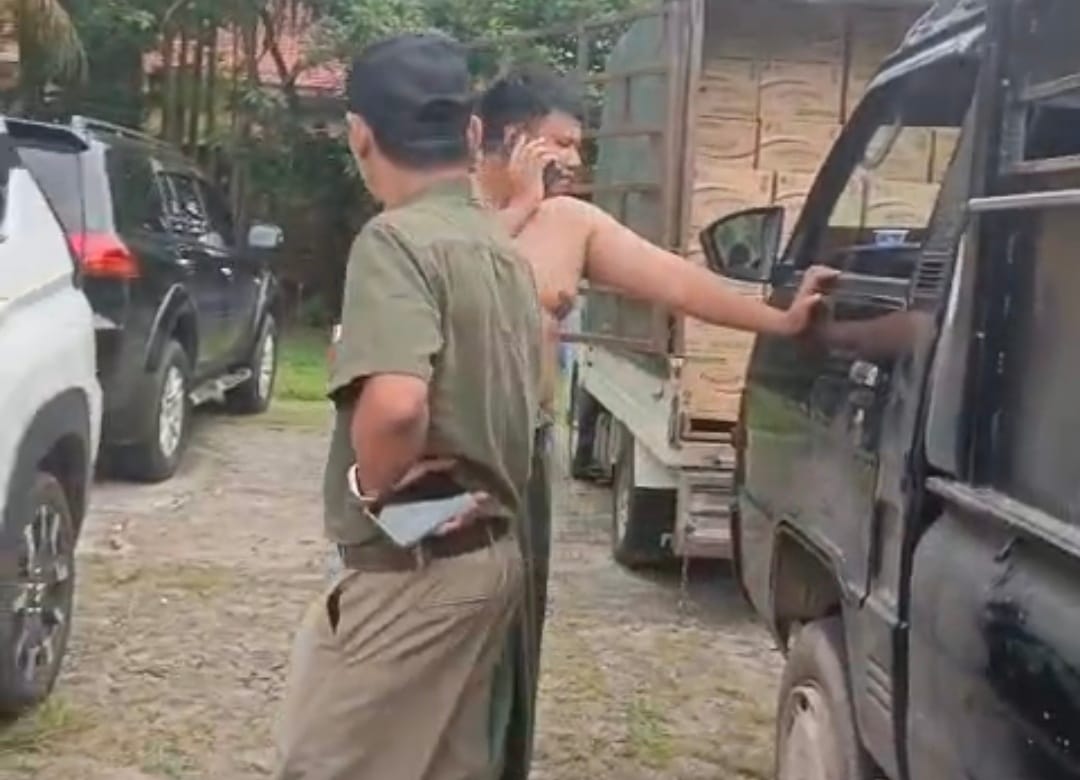 Anehnya, truk pengangkut minyak goreng tersebut terdapat spanduk bertuliskan “Penyaluran Bantuan Pangan Beras dan Minyak Goreng Provinsi Jambi Oktober-November Tahun 2025.”