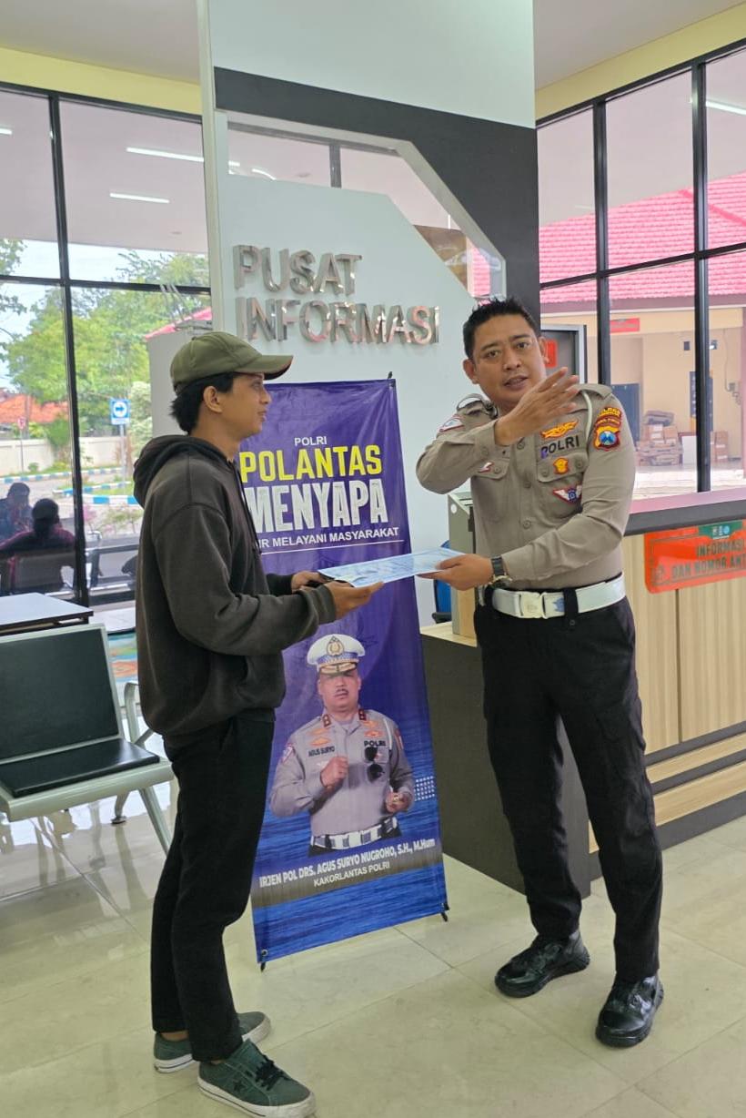 “Kami ingin memberikan kepastian kepada masyarakat terkait prosedur yang berlaku. Melalui program Polantas Menyapa, kami terjun langsung menjelaskan dokumen apa saja yang wajib dipenuhi agar proses administrasi kendaraan berjalan lancar dan cepat,” ujar IPTU Bross Tito Dharmawan.