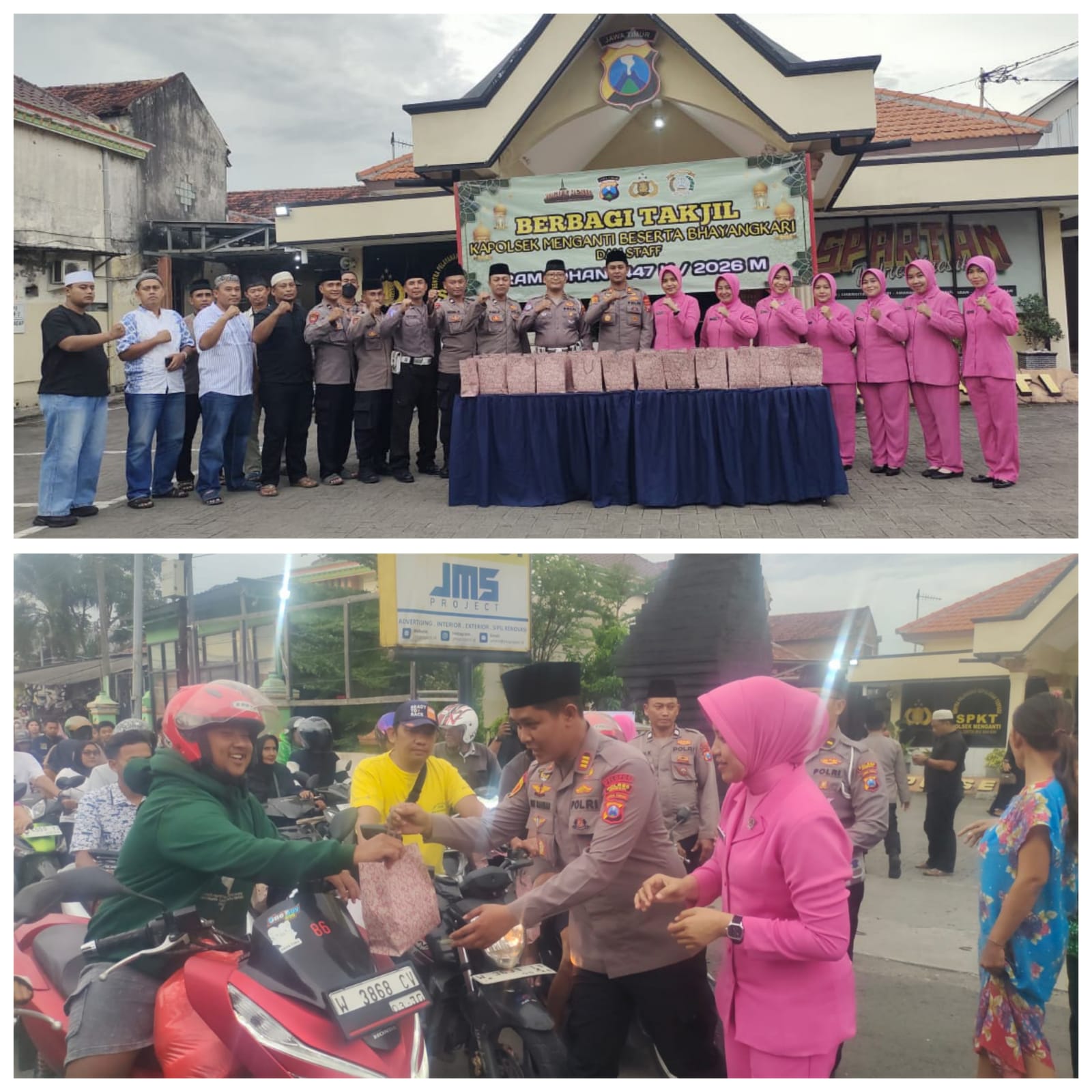 Gresik , Metrosoerya – Demi ningkatkan ketaqwaan di Bulan Suci Ramadhan 1447 H Polsek Menganti beserta Bhayangkari dan Staf membagikan Takjil di depan Mako Polsek kepada para pengendara yang melintas dan para warga sekitar menganti .