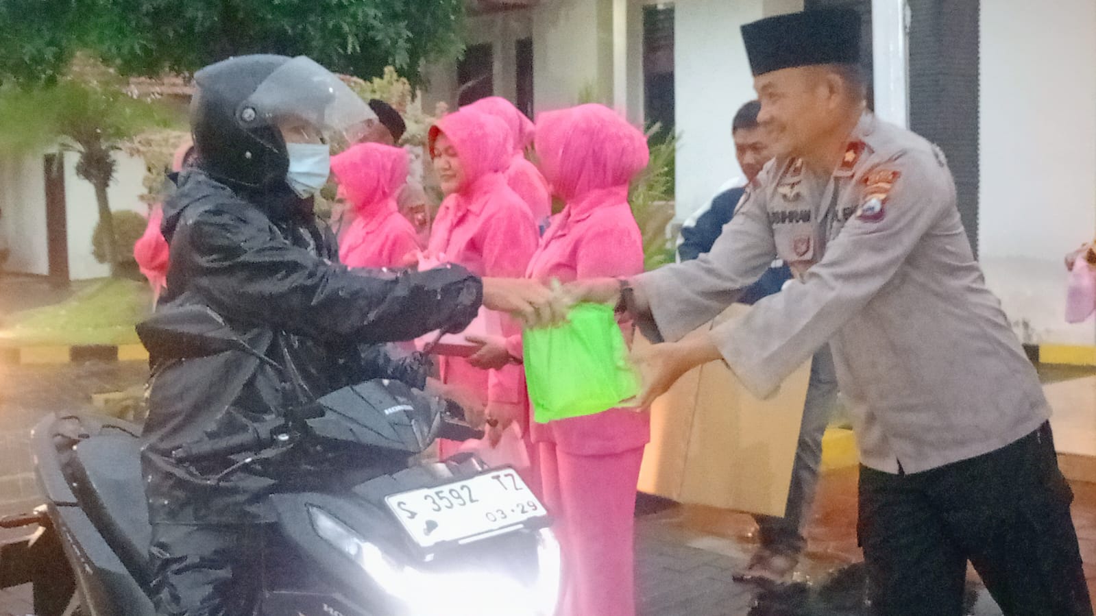 Meskipun di guyur hujan semangat kebersaman dan semangat terlihat nampak diwajah para Ibu – Ibu Bhayangkari dan para seluruh anggota jajaran Polsek Driyorejo .