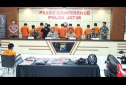 Polda Jatim Amankan 11 Tersangka Curanmor, Ketua Komplotan yang Serang Polisi Diberi Tindakan Tegas Terukur Kepolisian|March 9, 2025by Agus Yudo SURABAYA|metrosoerya.com, – Polda Jawa Timur berhasil menangkap 11 tersangka pencurian bermotor (Curanmor),