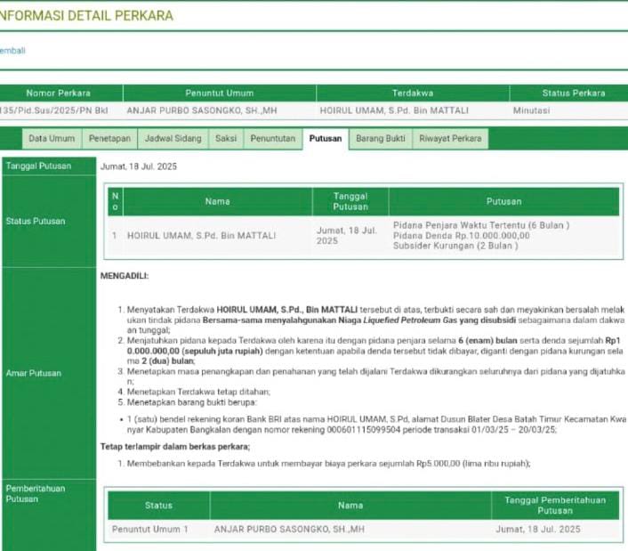 Bangkalan - Ancaman hukuman berdasarkan Pasal 55 Undang-Undang Nomor 22 Tahun 2001 tentang Minyak dan Gas Bumi adalah pidana penjara...