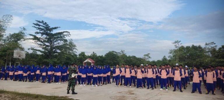 Metrosoerya.co.id,-Sampit - Babinsa Koramil 1015-01/MHS, Serda Halim Perdana Kusuma, memimpin latihan PBB bagi siswa SMAN 1 Mentaya Hilir Selatan yang...